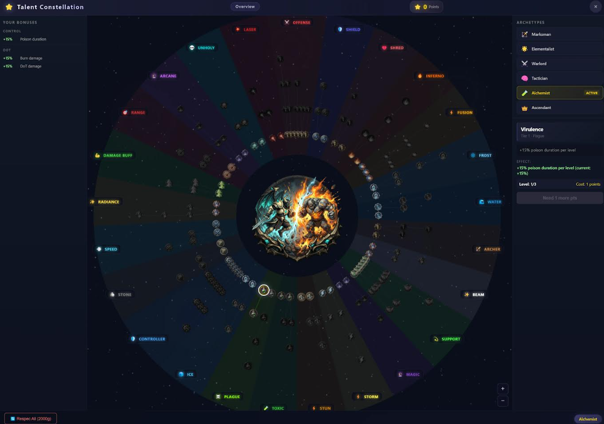 Players can explore multiple biomes and map styles, navigate dynamic weather systems that reshape battlefield conditions, and craft powerful defenses using a deep progression system centered on elemental damage types, hybrid tower combinations, and over 150 talents that allow players to modify and specialize their builds.